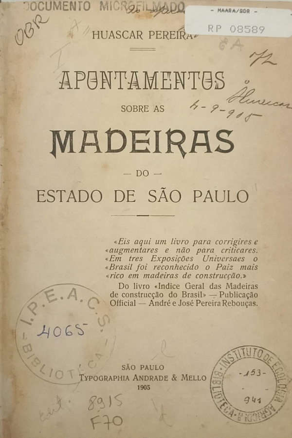 Apontamentos sobre as madeiras do estado de Sao Paulo [Brasil]
