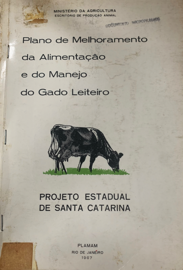 Plano de melhoramento da alimentacao e do manejo do gado leiteiro. Projeto estadual de Santa Catarina [Brasil]