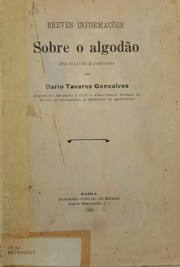 Breves informacoes sobre o algodao, sua cultura e industria