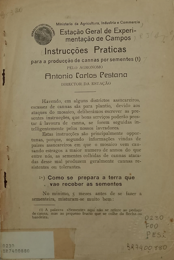 Instruccoes praticas para a produccao de cannas por sementes [Brasil]