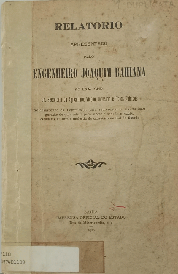 TextoIdioma: (Por) Detalhes da publicação: Salvador, BA (Brasil): Imprensa Official do Estado, 1920. Descrição: 103 pAssunto(s):