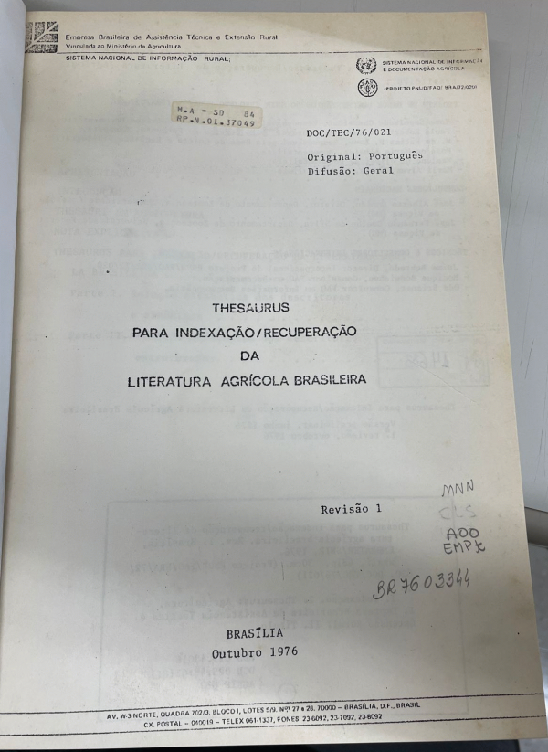 Thesaurus para indexacao/recuperacao da literatura agricola brasileira Revisao 1. DOC/TEC/76/021