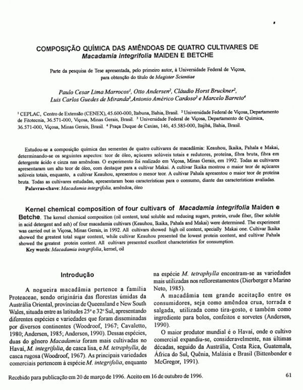 Composição química das amêndoas de quatro cultivares de Macadamia integrifolia Maiden e Betche