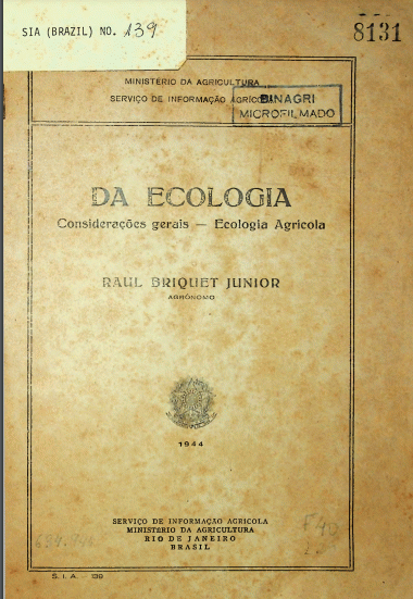 Da ecologia. Consideracoes gerais. Ecologia agricola