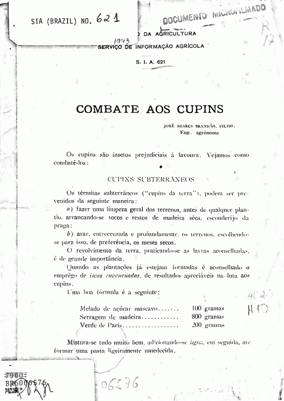 TextoSérie: SIA (Brazil) ; no. 621Detalhes da publicação: Rio de Janeiro, GB (Brasil): 1943. Descrição: 3 pAssunto(s): Recursos online: