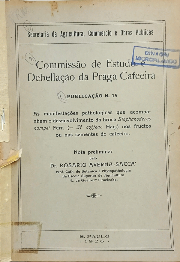 As manifestacoes pathologicas que acompanham o desenvolvimento da broca Stephanoderes hampei Ferr. (= St. coffeae Hag.)nos fructos ou nas sementes do cafeeiro [Coffea spp.]