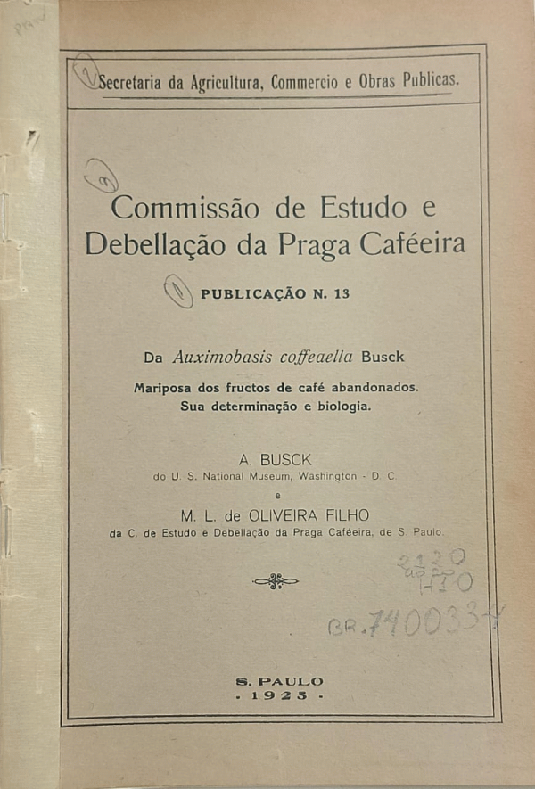 Da Auximobasis coffeaella Busck, mariposa dos fructos de cafe abandonados. Sua determinacao e biologia [Coffea spp., lagarta]