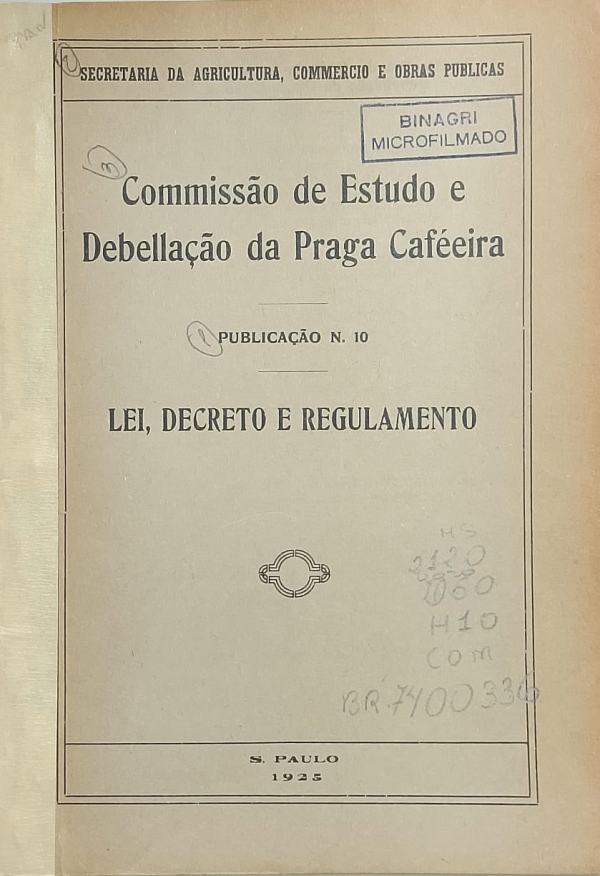 Lei, decreto e regulamento [Coffea spp., Stephanoderes coffeae Hag., expurgo, Brasil]