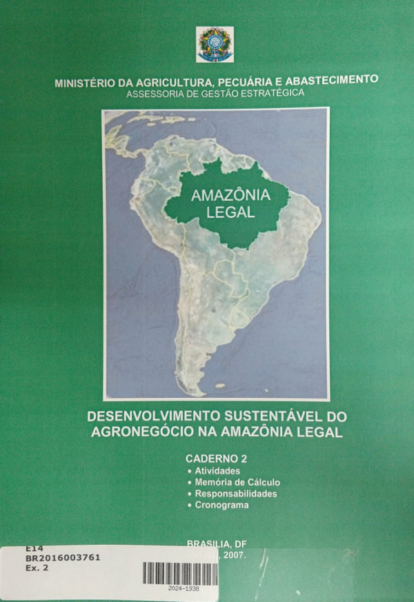 Desenvolvimento sustentável do agronegócio na Amazônia Legal: atividades, memória de cálculo, responsabilidades, cronograma Caderno 2