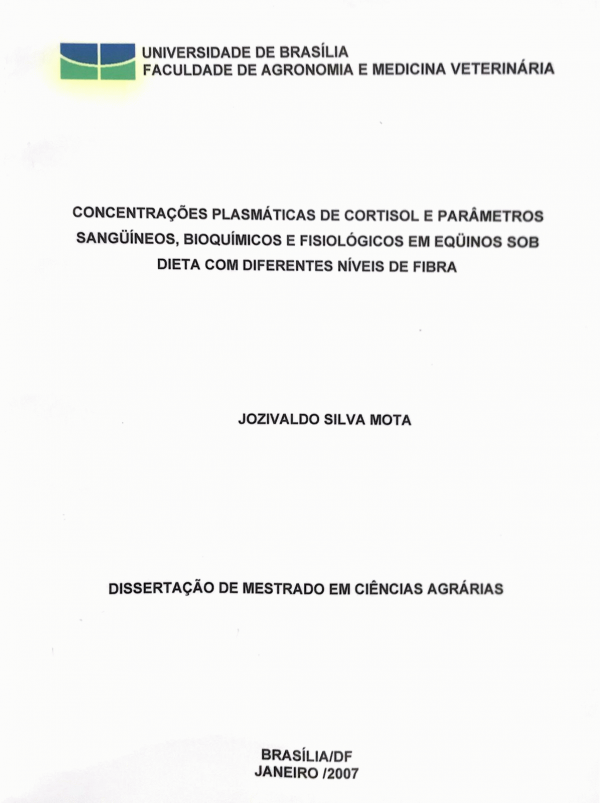 Concentrações plasmáticas de cortisol e parâmetros sanguíneos, bioquímicos e fisiológicos em equinos sob dieta com diferentes níveis de fibra