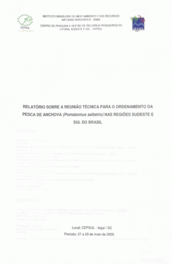 Relatório sobre a reunião técnica para o ordenamento da pesca de anchova (Pomatomus saltatrix) nas regiões Sudeste e Sul do Brasil